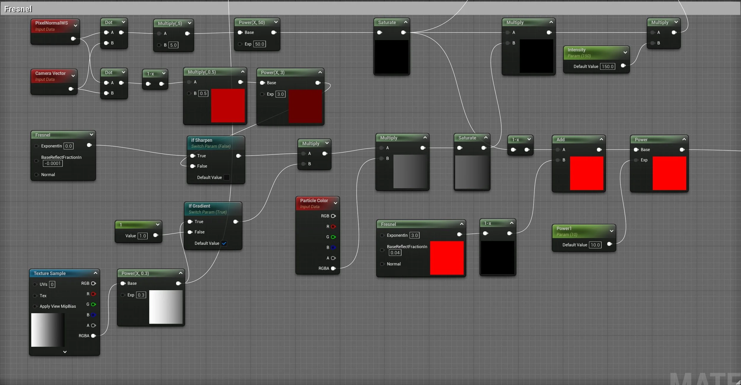 This custom fish material consists of three key elements: vertex animation, a Fresnel effect, and a Screen Position texture.