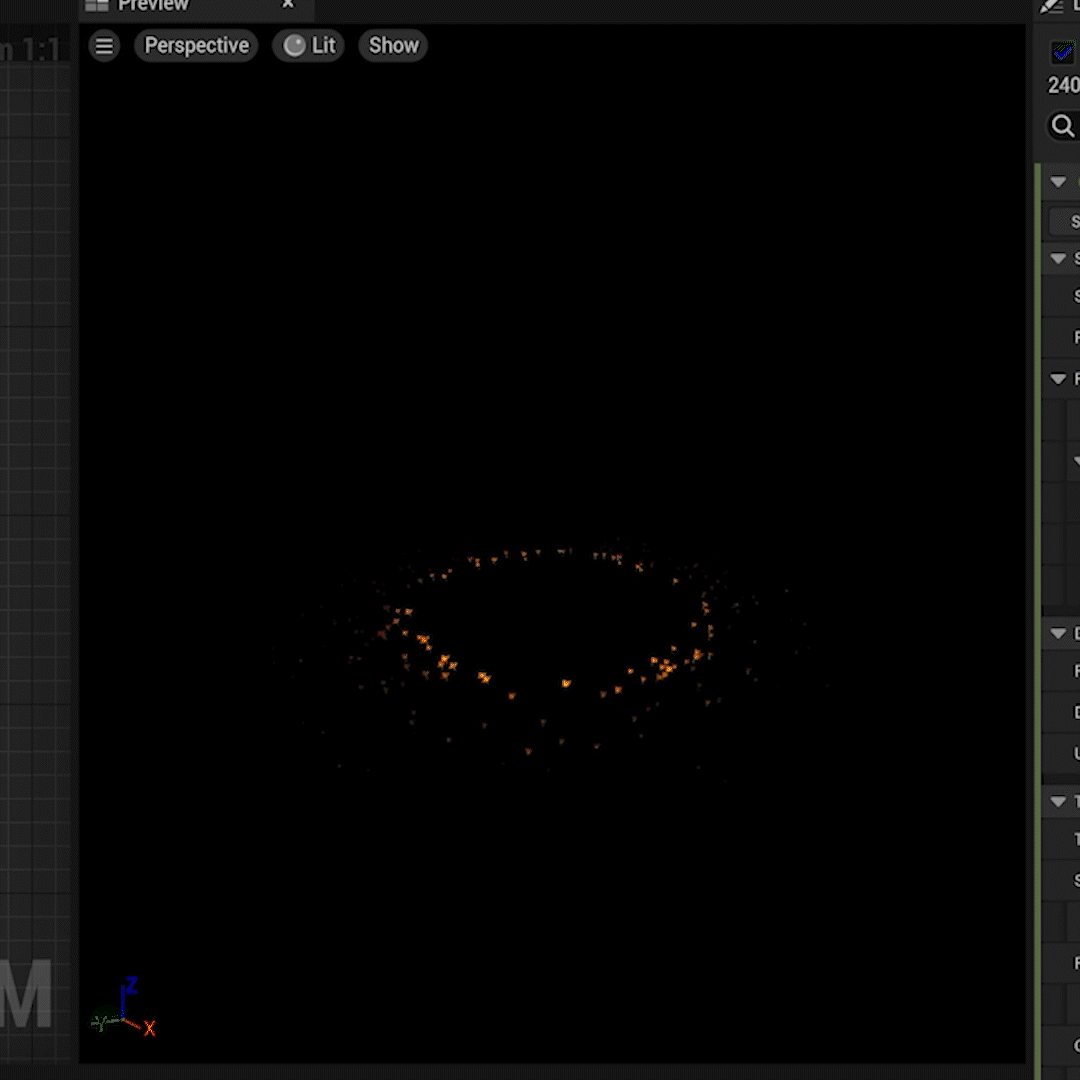 For animating the petals' dissolution in and out, I implemented a UV-based animation technique, utilizing a curve within Niagara to manage the effect.